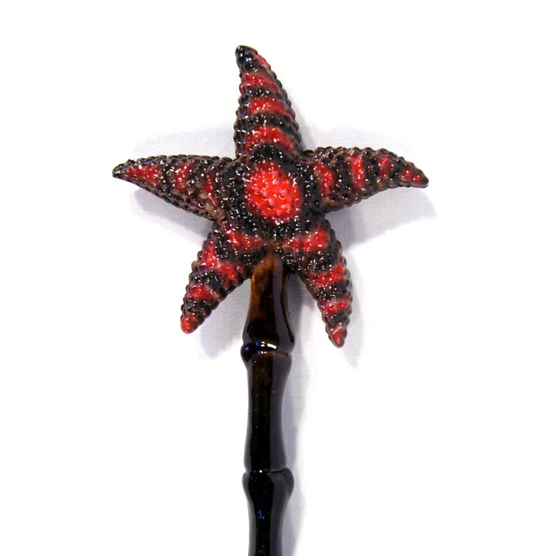 Hand Painted Back Scratcher Dark Red Starfish Bird 18"
