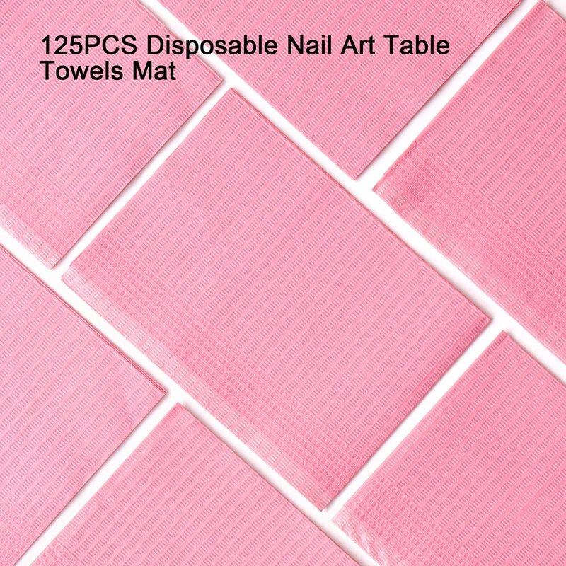 LXIANGN 125PCS Disposable Nail Art Table Towels Mat 13" X 17" Waterproof 3 Ply Nail Art Mat Paper Sheet Clean Pads Tattooing Table Mat Nail Table Cover Tattoo Supplies (Pink)