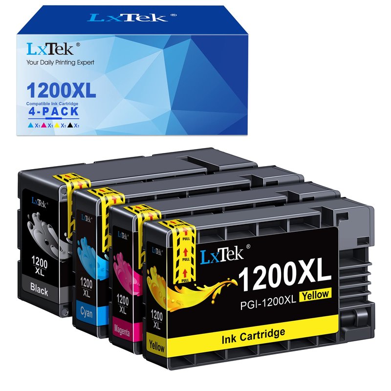 - Package Contents: 4 Pack (1 Black|1 Cyan|1 Magenta|1 Yellow) compatible for Canon 1200XL ink cartridges