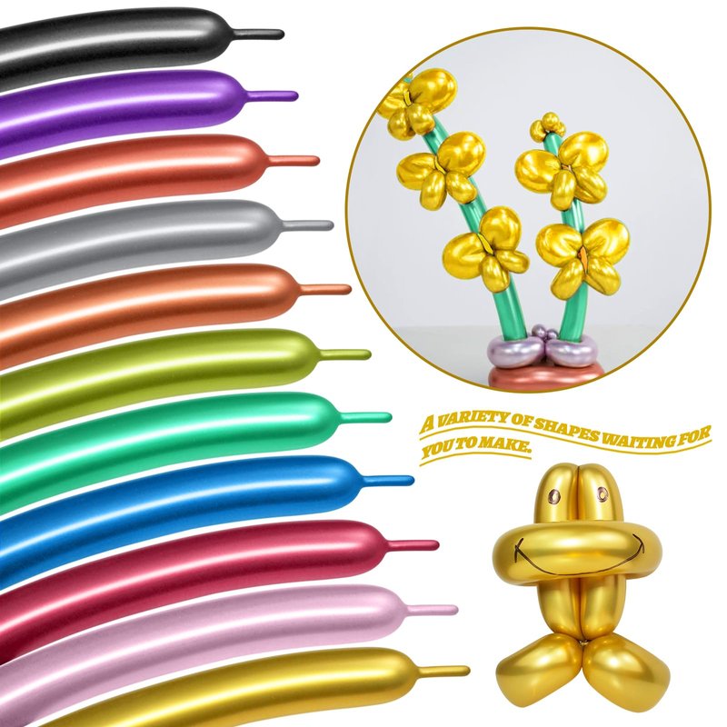 - Plenty of high-quality materials, safe and non-toxic: The super elastic mixed color long balloons metallic is 20% thicker than the ordinary long balloon. Strong and hard to break, bright and opaque. These chrome metallic balloons decorations are made of eco friendly natural latex, which is very safe, Suitable for children to play!