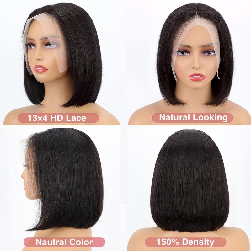 Bob Straight 13x4 Frontal Wigs Quality: 180% Density Glueless Human Hair Wigs for Balck Women, 13x4 HD Transparent Swiss Lace Front Wigs with Baby Hair (More Close to the Skin Color), Natural Hairline. Soft & Smooth As Silky, Comfortable Against Skin.