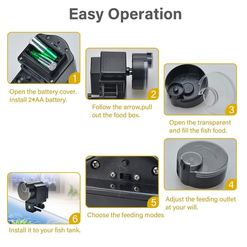 - ✅Easy to install: Two ways to install the feeder to the tank. 1.Clip on the tank wall by rotating the screw. 2.Affix the feeder with double-side sticker (included) on the fish tank cover. Choose proper way per your needs.