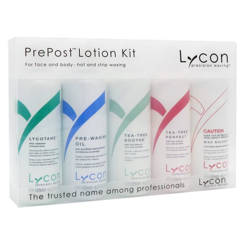 Lycon Pre Post Lotion Kit, Waxing Kit, Pre Waxing Products, Pre and Post Wax Treatment, Waxing Supplies, Wax Lotion and Oil, After Waxing Skin Care Set Includes 5 x 125ml Bottles