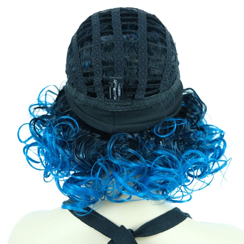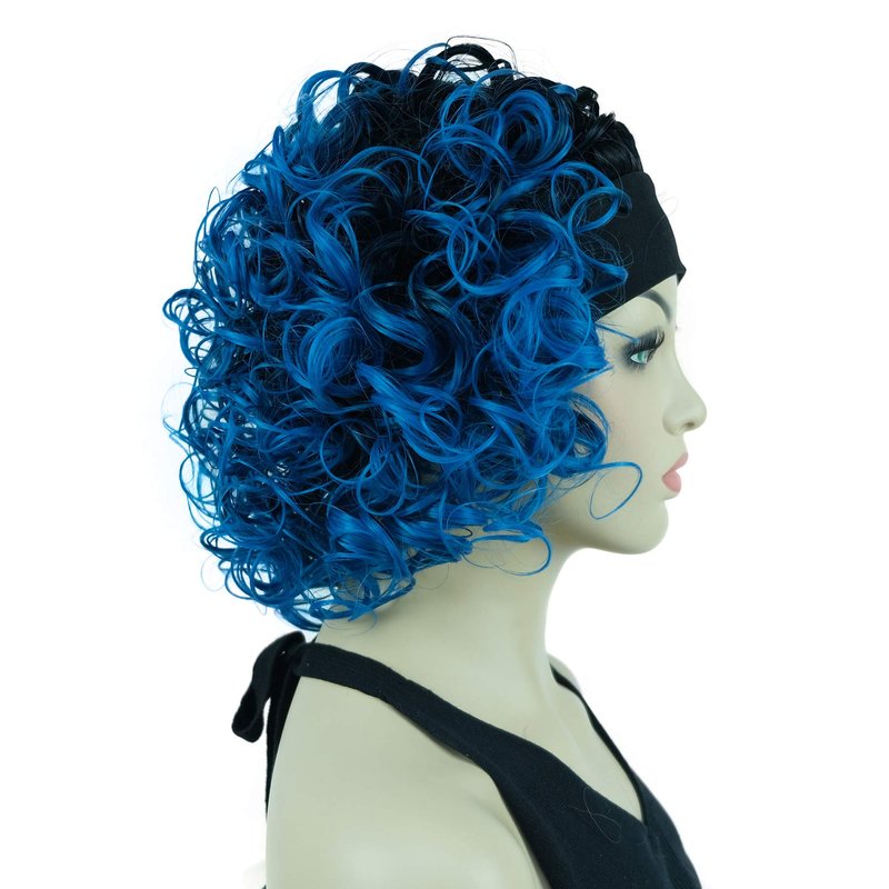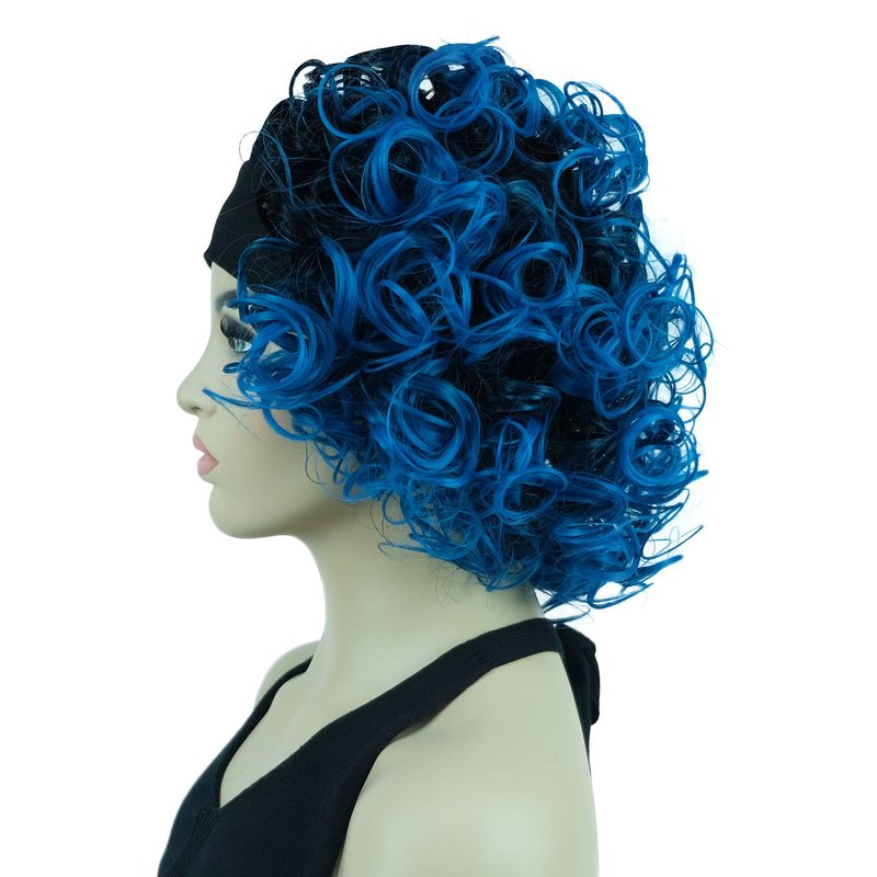Lydell 12" Super Curly Wigs Ombre Black Blue Hair Synthetic Headband Wigs (1+T4330)