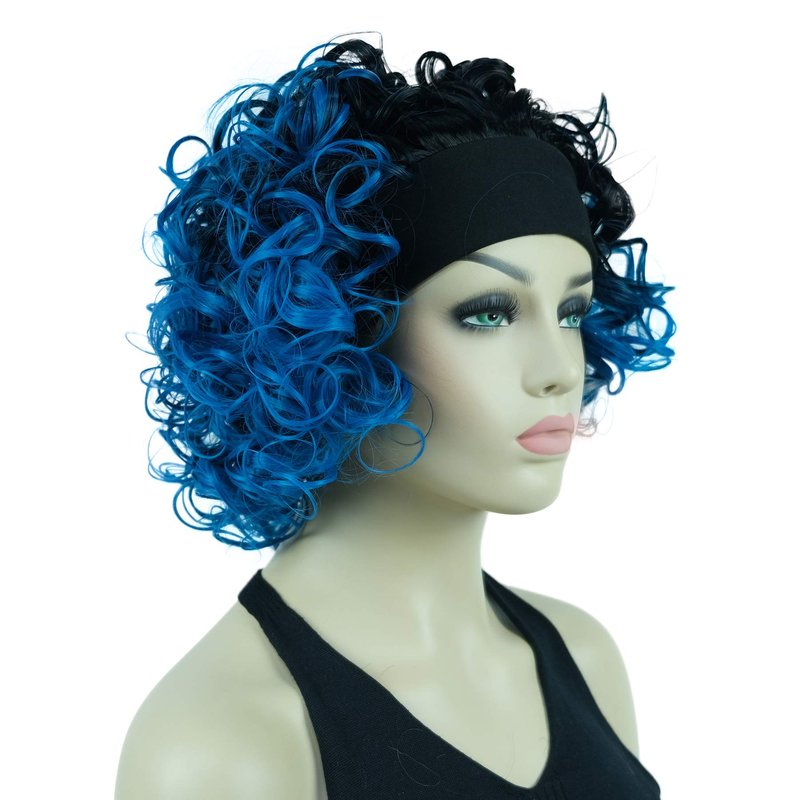 - Color: Black&Blue, Style: Curly 3/4 Head Wig with Headband, Length: 12 inch, Weight: 230g (8.1 oz), Cap Size: Average 22" - 22.75"
