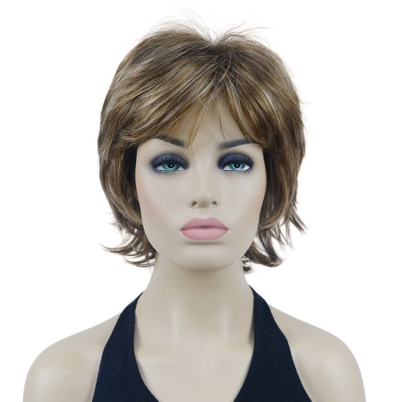 Lydell Short Layered Shaggy Wavy Full Synthetic Wigs (V6 Light Reddish Brown with Blonde Highlight)