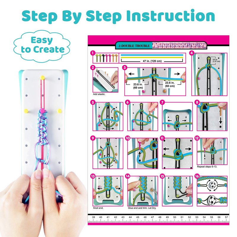 - 🍬 Find Your Creative Possibilities in DIY! Any fan of DIY for arts and crafts will fall in love with this awesome kit!!! Make the one-of-a-kind cool bracelet by combining the color of thread, knot styles and pattern of stickers.