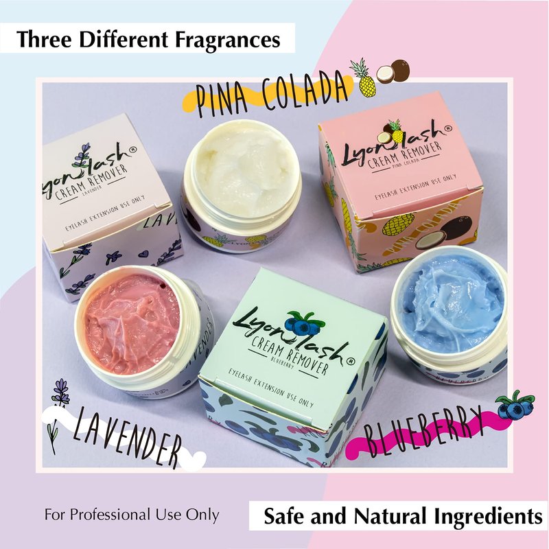 - VARIETY - Say goodbye to boring cream removers, and choose one that suits your mood or your fragrance preference (and removes the glue and lash extensions just as easily). The Lyon Lash cream remover comes in three different fragrances you can choose from. You can get it in Pina Colada, Lavender or Blueberry scent just to elevate your eyelash extension experience.