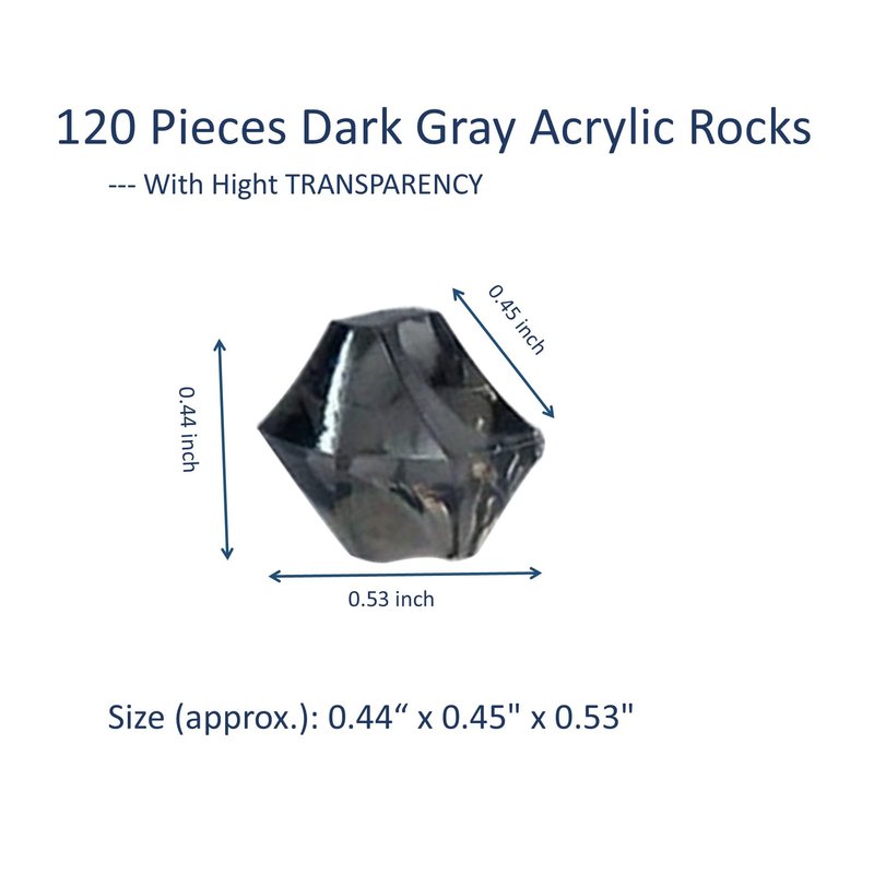 Lyrtrees 120 Pieces Decorative Acrylic Crystal Gems, 1/2 Inch, Dark Grey Fake Ice Rocks, Reusable Acrylic Crushed ice Rocks for Home Décor