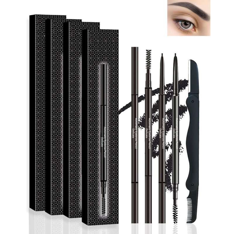 LYSdefeu Eyebrow Pencil - 4 Pcs Professional Micro Brow Pencil Kit with Brow Razor, Longwear Waterproof Eyebrow Makeup with Dual Ends, Ultra-Fine Mechanical Pencil for Women Eye Makeup – 01 Black