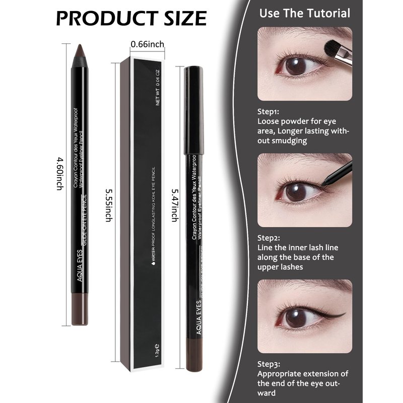 - GEL EYELINER PENCIL- The pencil has a smooth and delicate texture, giving your skin a soft touch. Strong adhesion, no halo, thick and thin controllable silky waterproof eye-liners, which have 2 colors to choose, black and brown, can enlarge your eyes and create a variety of charming eye makeup.