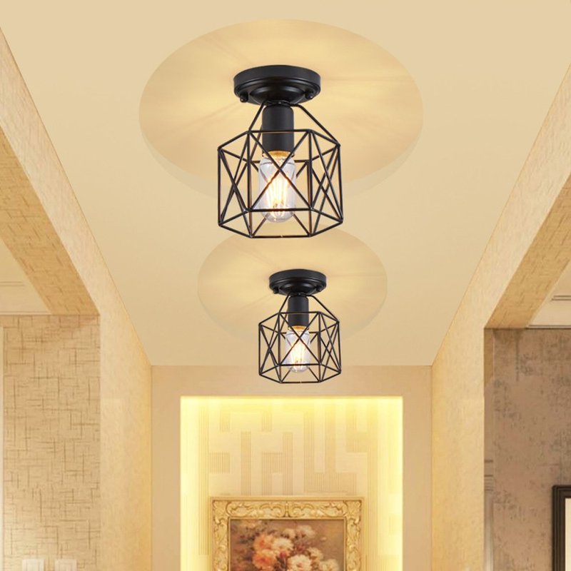 Lysed E26 E27 Retro Black Industrial Light Fixture,Vintage Flush Mount Ceiling Light,Mini Metal Rustic Ceiling Lamp for Porch Hallway,Kitchen,Stairway,Farmhouse Light