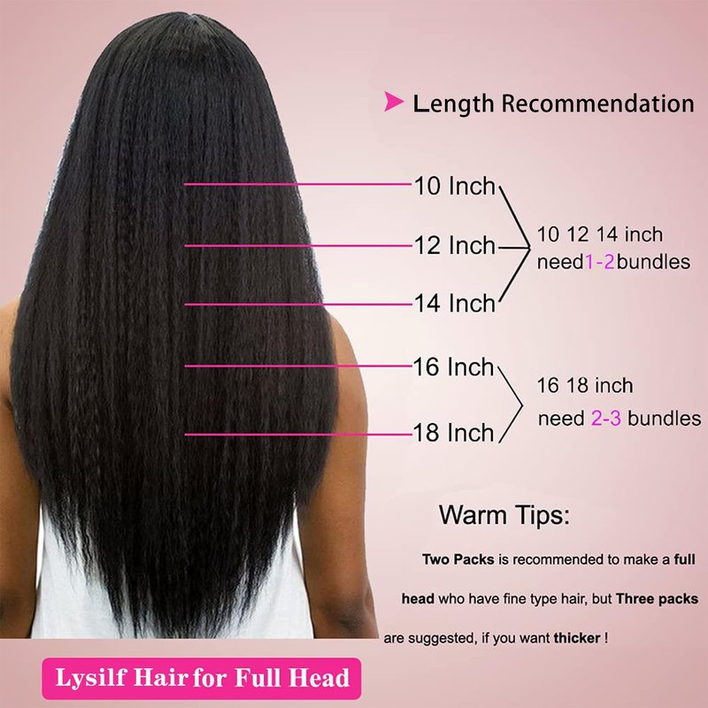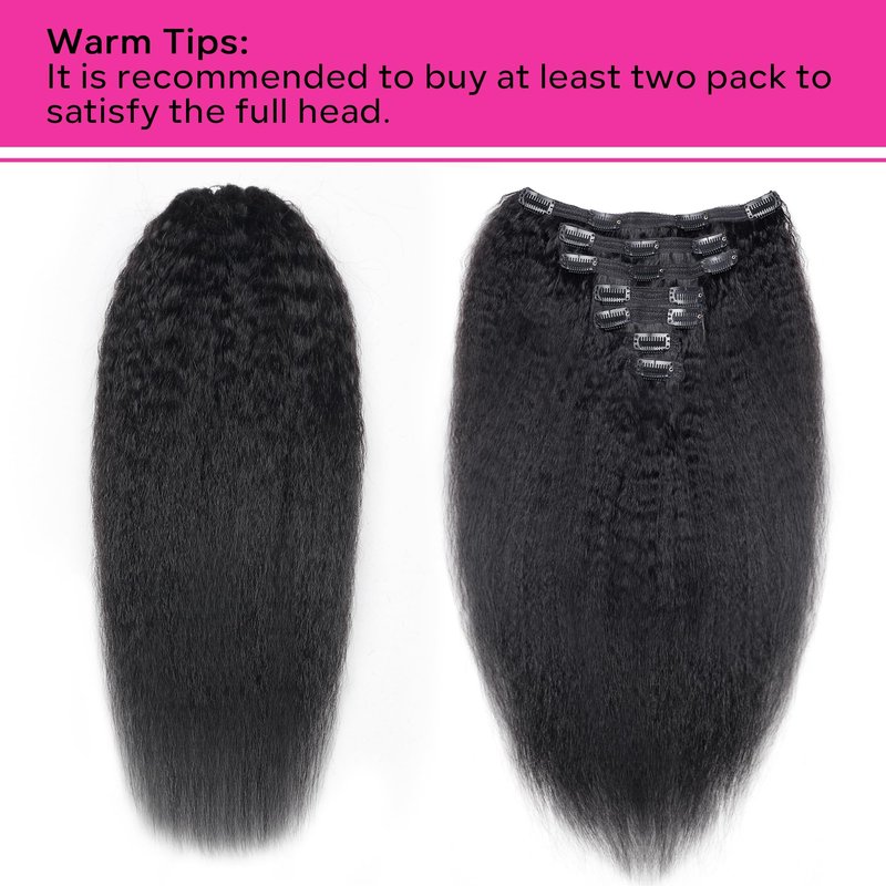 - 【Texture】Lysilf Kinky straight hair clip hair extension is 100% human hair for good styling (washing, curling, strengthening, etc.) 90-100g 7tablets in a pack that perfectly covers your entire head! If you want to achieve a perfect result, it is recommended to increase the thickness by 2 pack and the length by 2-3 packs.