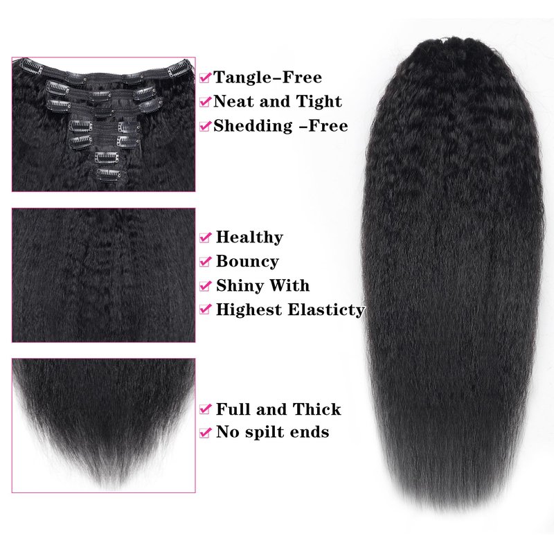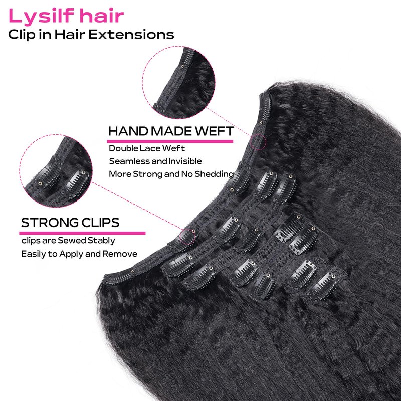 - 【More comfortable】Unlike traditional hair extensions, Lysilf Kinky straight clip hair extensions choose high-quality hair. High quality, clean, no shedding and no tangles, soft, natural, no chemical reactions, easy to dye, can be curled and redesigned, easy to comb, easy to wash and care for, no tape and glue, no damage to the scalp and hair, can blend perfectly with your hair color, no one knows you have hair extensions! The sturdy clip does not slip off easily.