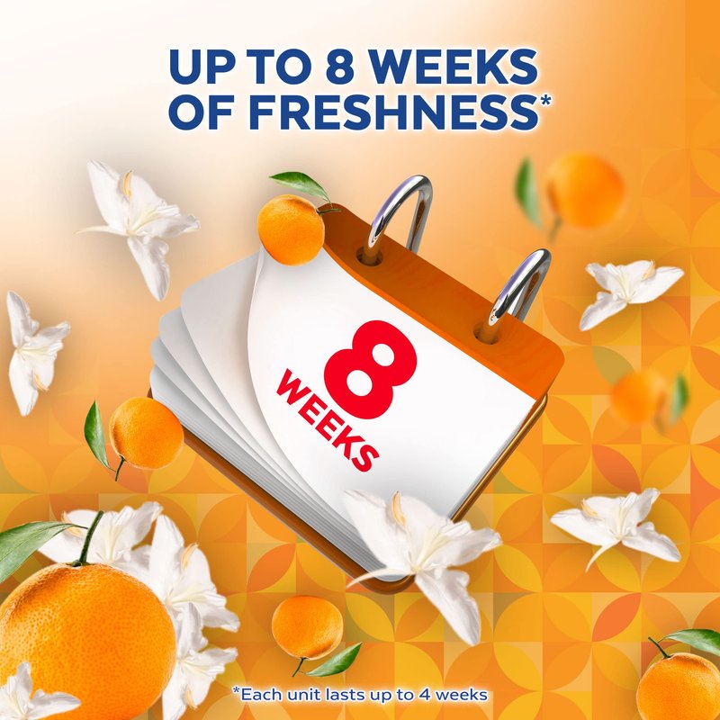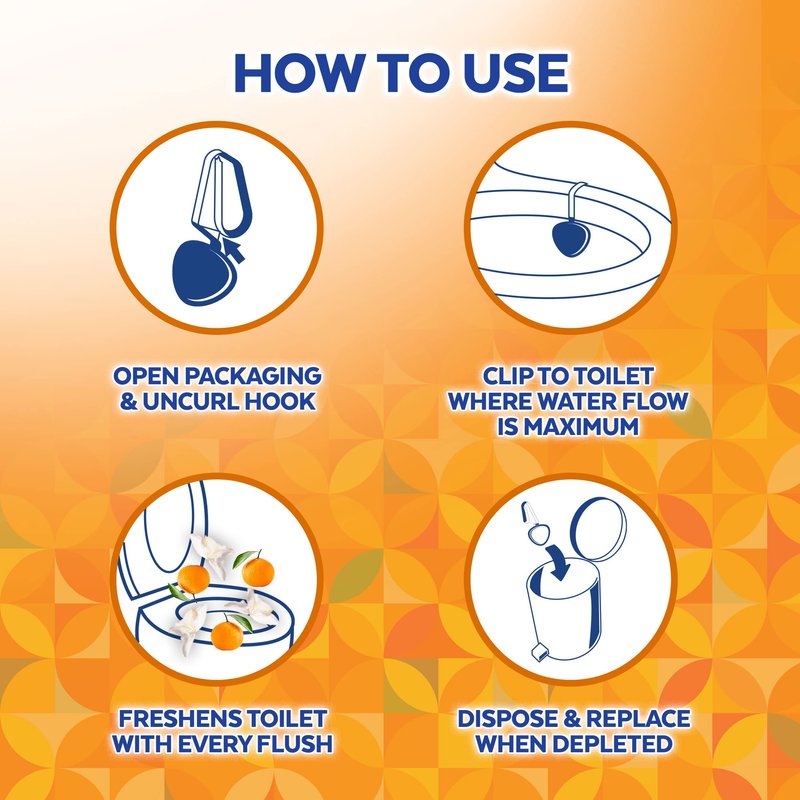 Lysol Hygienic Automatic Toilet Bowl Cleaner hangs on the inside of the toilet bowl to help you maintain a Complete Clean between deep cleaning your toilet bowl. It not only cleans your toilet bowl with every flush, but it also freshens your entire bathroom . They last for up to 8 weeks, and are easy to use! It contains antimicrobial protection in the hook to resist odor causing bacteria.