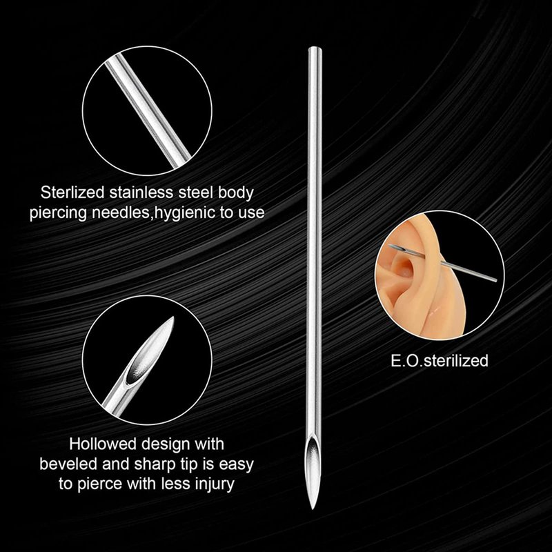 Ear Nose Piercing needles fits for ear, nose, navel, lip, belly, eyebrow, tongue, tragus, rook, labret, daith, nipple, prince albert.