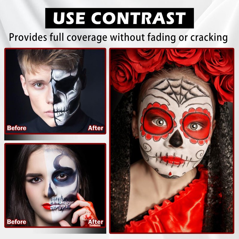 - 【Wide Application】Halloween makeup kit specializes in various Halloween role-playing,such as SFX clown,zombie,vampire,skeleton makeup,adding fun and realism to the festival