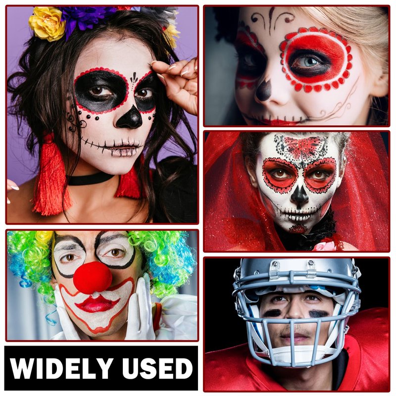 - 【High Quality】Face paint is brightly colored and has strong makeup holding power.It can be applied with other colors,providing excellent full coverage for facial and body painting,and providing you with a high-color clown makeup