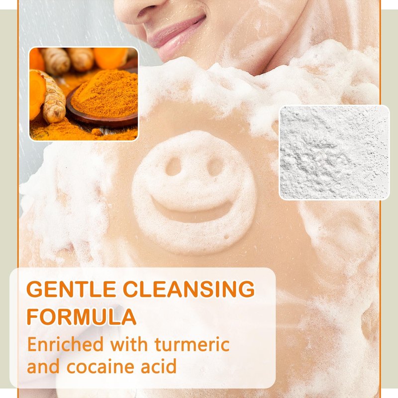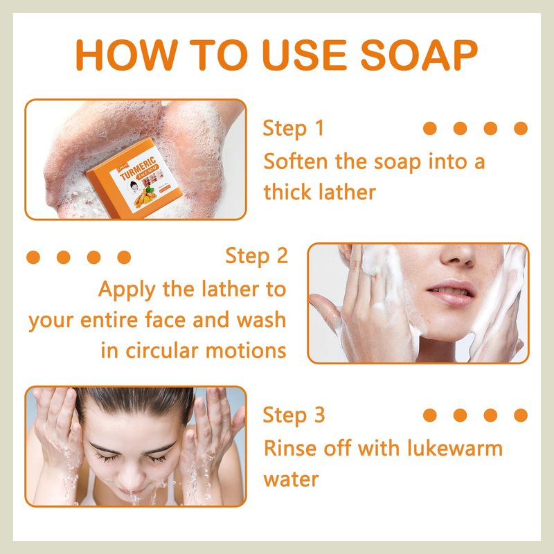 - 💕【How to Use】Place the turmeric soap bar into the lathering net,wet with water and knead out the rich foam,apply the foam to face or body,and finally rinse off with warm water to bring you a refreshing cleansing experience.