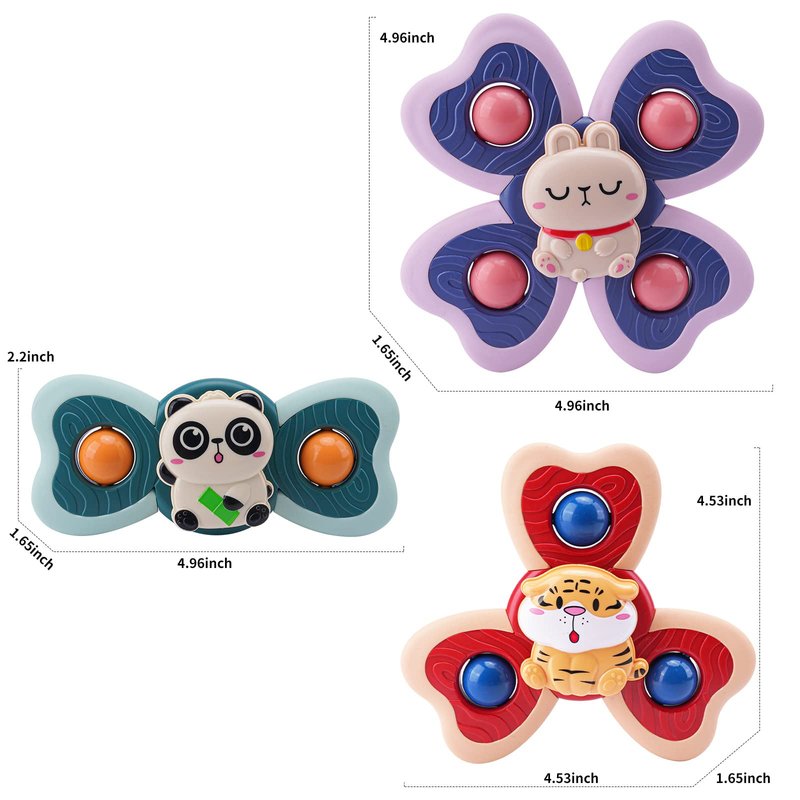 - 【Cute Shapes】: This spinning sucker spinning top toy has 3 cute animal shapes of tiger, cat and panda. Colorful spinning tops are more attractive to babies. It will accompany your baby through every happy day and is one of the best toys for your baby.
