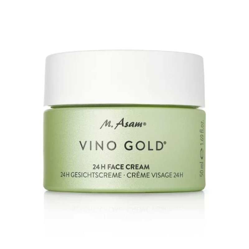 Experience the 24-hour protection against premature aging with M. Asam's VINO GOLD 24h Face Cream. It features our VINO GOLD super antioxidants (OPC and Resveratrol), combining the most valuable, youth-activating ingredients from grapes. Your skin is shielded from harmful environmental factors, minimizing visible signs of premature aging. M. Asam's VINO GOLD 24h Face Cream provides protection against free radicals, the leading cause of premature, light-induced skin aging, It is the perfect basic care for every skin type and age. The patented grape power nourishes and protects against light-induced skin aging. Fine lines are smoothed, plumped with intense moisture, reducing wrinkle depth, and skin feels noticeably firmer. Its light texture, enriched with Aloe Vera, organic grape seed oil, ceramides, and a revitalizing scent, refreshes and calms. Overall, skin appearance is significantly improved. Apply morning and evening to the face and massage in. Natural ingredients often require different dosages and applications. Clean formulations lack silicones and microplastics, which can lead to a white "rubbing foam" that takes longer to absorb if too much product is used or if rubbed in too quickly. This is not a sign of lower quality, but rather demonstrates the value of the oils in the formula. It is recommended to use a smaller amount and gently stroke it in. By applying Clean Beauty products mindfully, you can transform your daily care routine into a personal pampering experience.