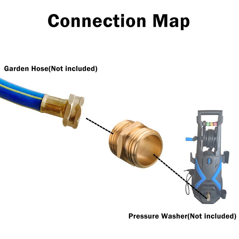 - Includes 2 pieces brass pipe with double male, 2 pieces brass connector with double female swivel and 4 extra garden hose washers.