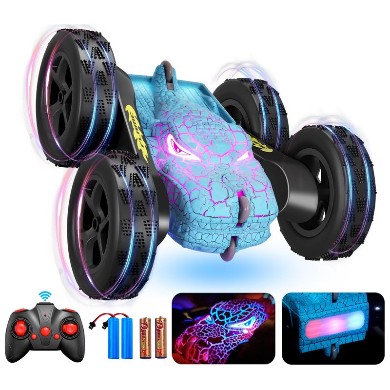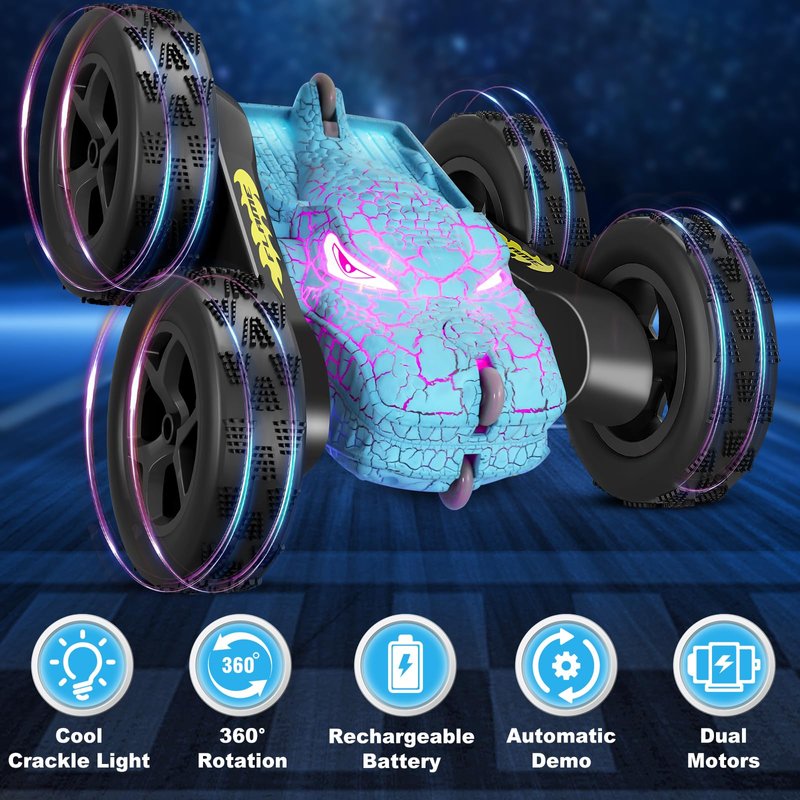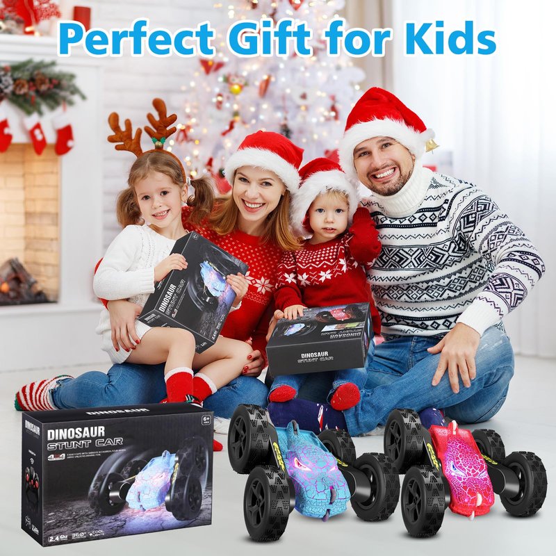 - DOUBLE SIDED 360°ROTATION & AUTOMATIC DEMO - Our remote control car for girls boys 8-12 supports double-sided driving,forward,backward,left & right turn,and 360°rolling flips. The dinosaur fast rc cars is radio controlled,can provide your children an exciting driving experience. And rc stunt car also can automatic demo by itself, like a dancing car. Perfect gift for kids age 4-7 8-12.