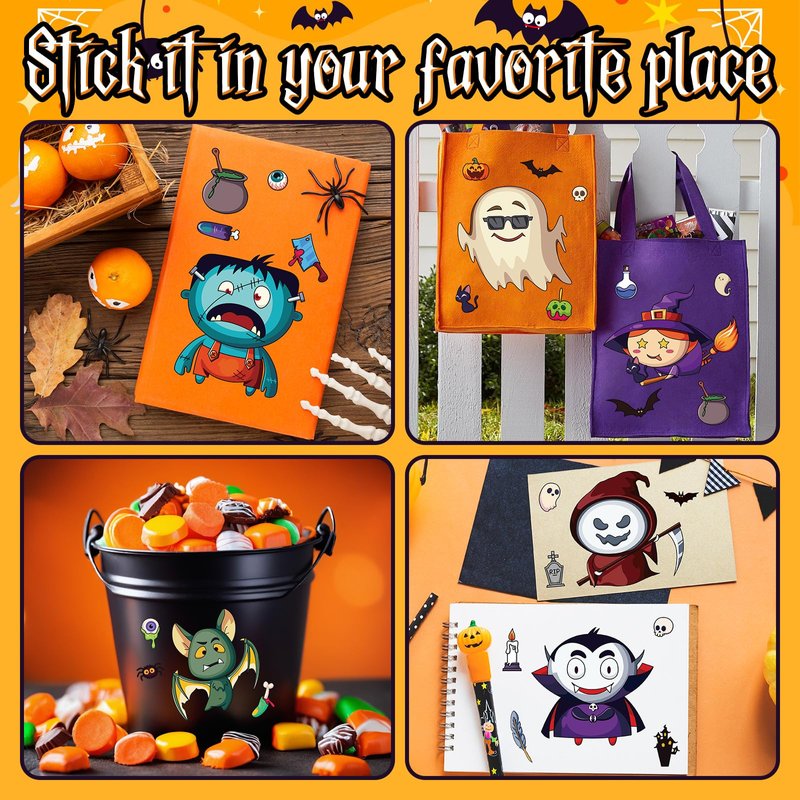 - Effortless Fun: Each sticker is self-adhesive and easy to apply on a wide range of surfaces including paper, cardboard, and walls. Quick to stick with a durable hold, these are perfect as Halloween party favors and Halloween goodie bag stuffers.