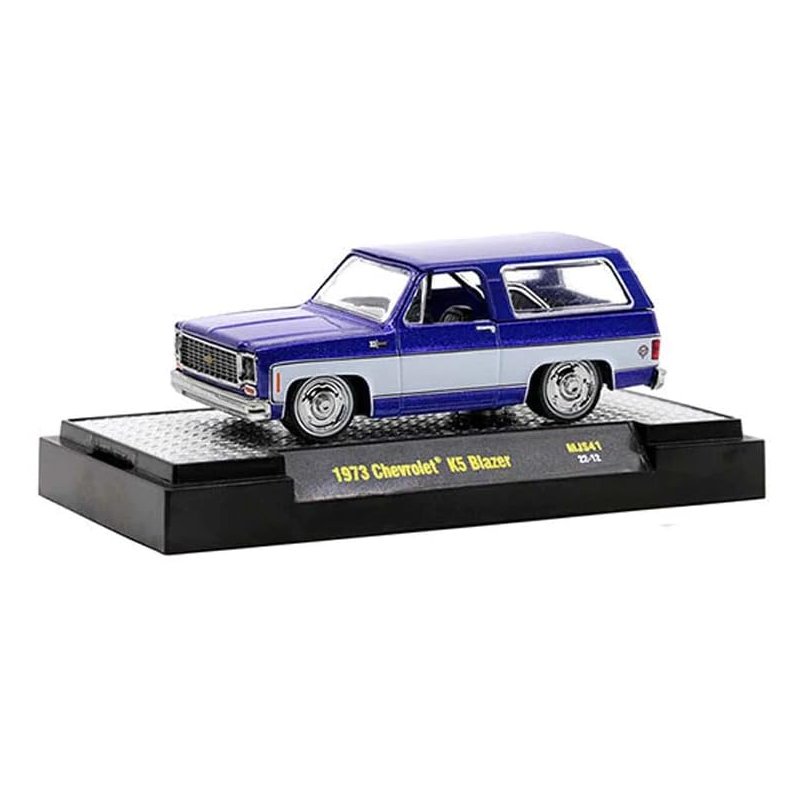 Brand new 1/64 scale diecast car model of 1973 Chevy K5 Blazer Purple Metallic and White Limited Edition to 6600 pieces Worldwide die cast model car by M2 Machines 31500-MJS41