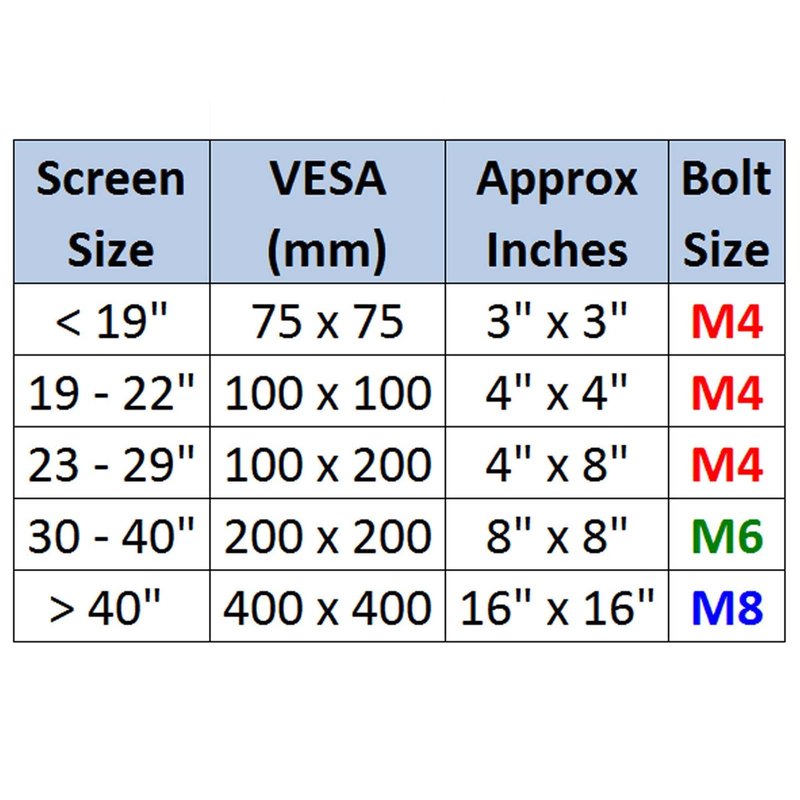 - M6 Bolt Size for TVs 30" thru 40" ONLY