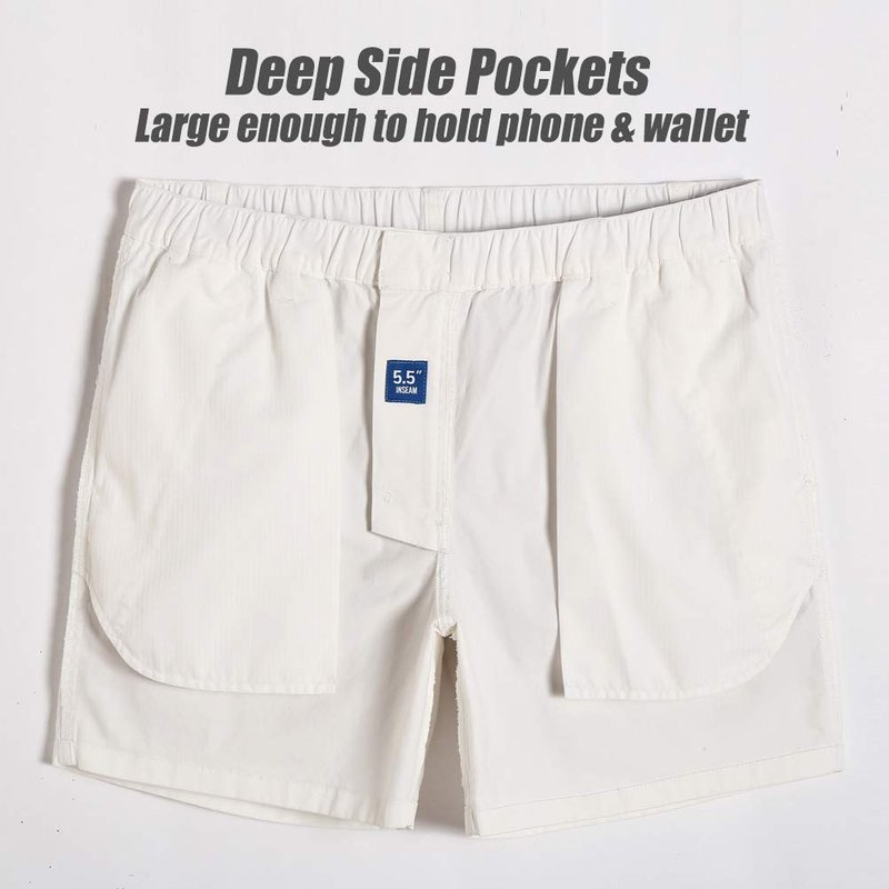 maamgic Men's Classic-fit 5.5" Cotton Casual Shorts Elastic Waistband with Multi-Pocket Daily Wear Walking Summer Outfit White 33
