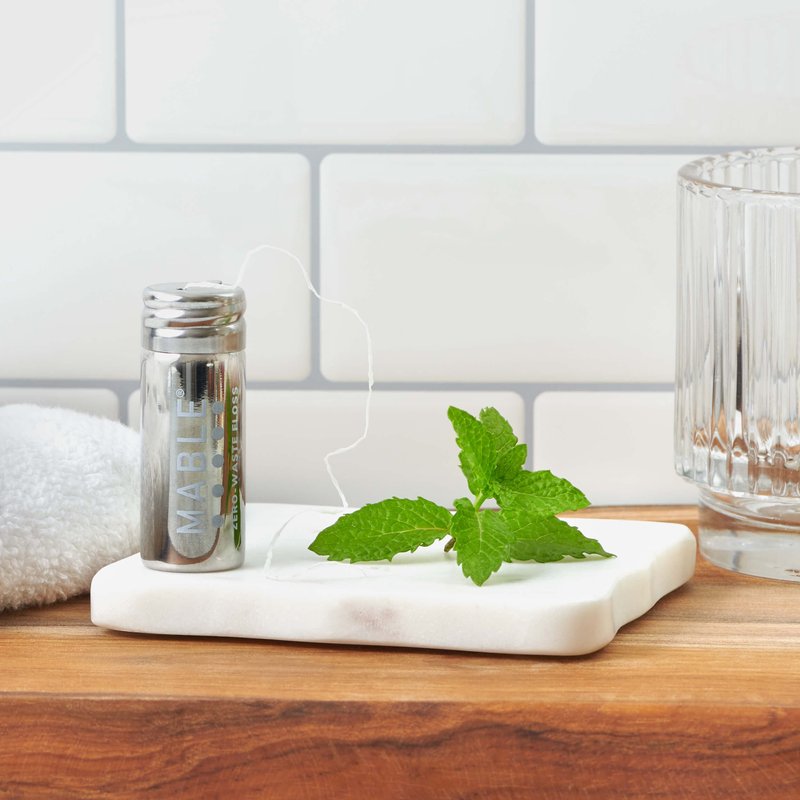 The MABLE Floss Container is a great zero-waste addition to your dental care routine: Our natural floss is made with Ahimsa silk, a non-violent method of silk harvesting and is 100% compostable. The floss has a hint of peppermint essential oil, and is coated with Candelilla wax to better glide in between teeth. The stainless steel dispenser is made with food grade stainless steel and smash proof, making it ideal for travel or on the go flossing.