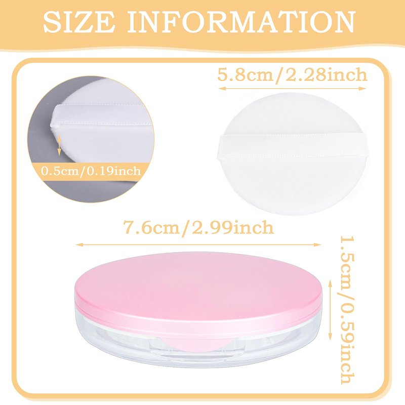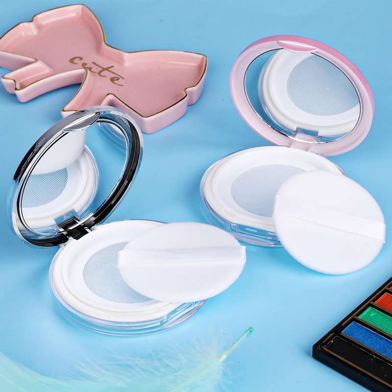 - Package Component: The package contains 2 loose powder containers and 2 powder puffs. Each pack of loose powder containers includes 1 powder compact case with elastic mesh and mirror.