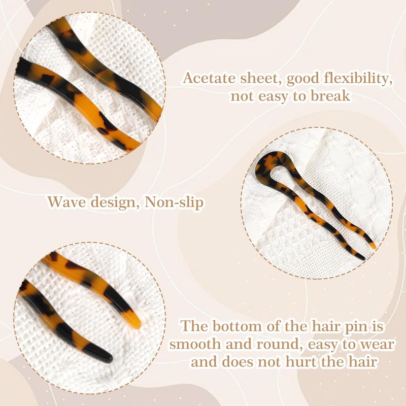 - Material: These U shaped hair pins are made of good quality acetate material with a glossy surface, these vintage hair pins will not damage your hair. Use these U shaped hair clips in all kinds of parties to make you look more glamorous.