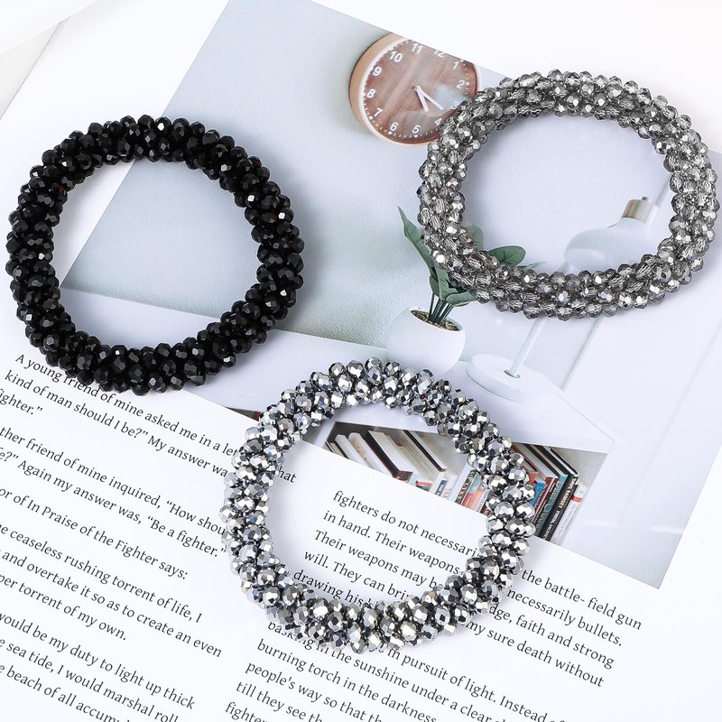 - Exquisite Design: The hair ties with bead is an innovative combination of bracelets and hair accessories. The hair rope is embellished with rhinestones for a sparkling and eye-catching look. The crystal hair ties are portable and can be served to tie up your hair when needed, and when not, can be worn as a chic bracelet on your wrist