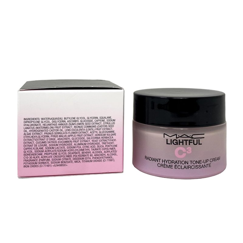 M.A.C Cosmetics Lightful C3 Radiant Hydration Tone-Up Cream - 1.7 oz / 50 mL. An instant tone-up & plumping facial moisturizer. Helps instantly blur the appearance of imperfections. Provides immediate & long-term moisturization & plumping effect. Improves skin's health & brightness over time. Replenishes skin's barrier up to eight hours. Unveils a more even-toned complexion with a natural lit-from-within-glow.