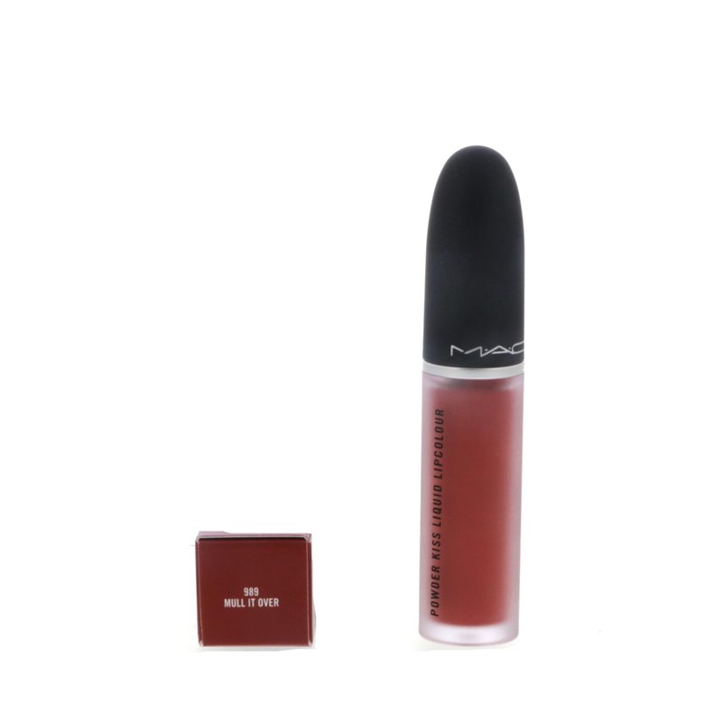 MAC Powder Kiss Liquid Lipcolour Lipstick - 989 Mull It Over (Dirty Peach) - 0.17 fl oz / 5 mL. Believe it when you feel it. Gives you that blurred, high-impact matte look. Experience a weightless kiss of colour delivering ten hours of moisture. Its whipped, mousse-like texture softly and evenly kisses lips with just the right amount of non-settling, non-flaking, comfortable colour. The special blend of vitamin E, powders and emollient properties provides excellent cushion, flexibility, wear and moisture that will leave lips looking and feeling soft and smooth all day. Features an hourglass-shaped applicator that perfectly hugs lips to fill in lines and enhance lips with a smoothing and blurring effect.