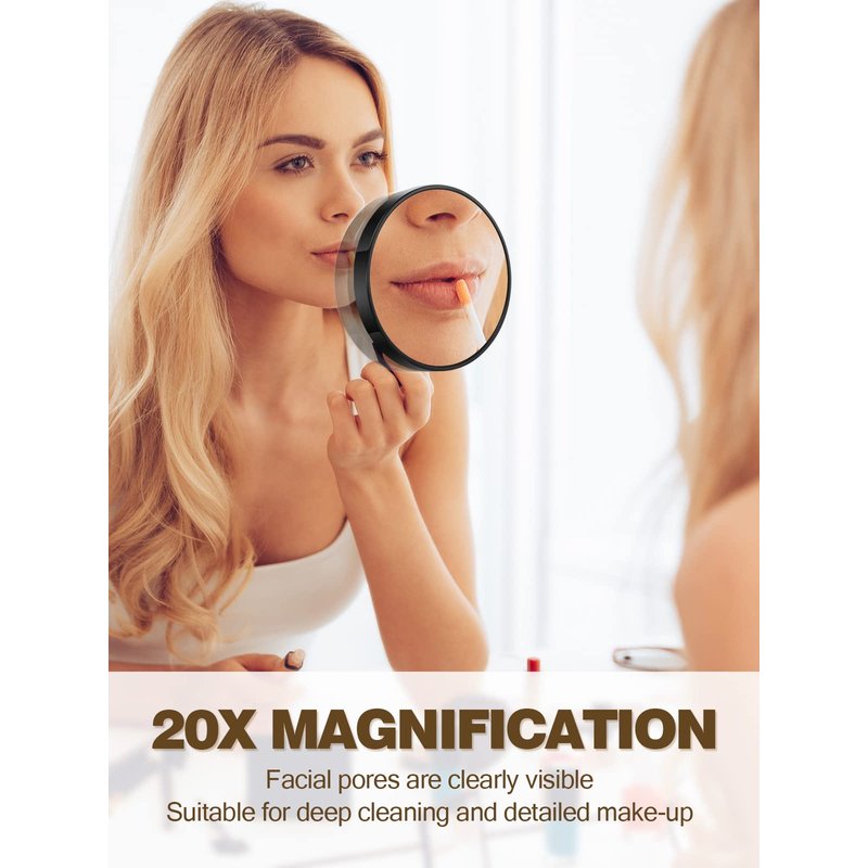 - Our 20x travel mirror is only 3.5 inches palm size, 0.4 inches thickness, and perfect size; It can be used indoors or easily placed in your bag for outdoor use.