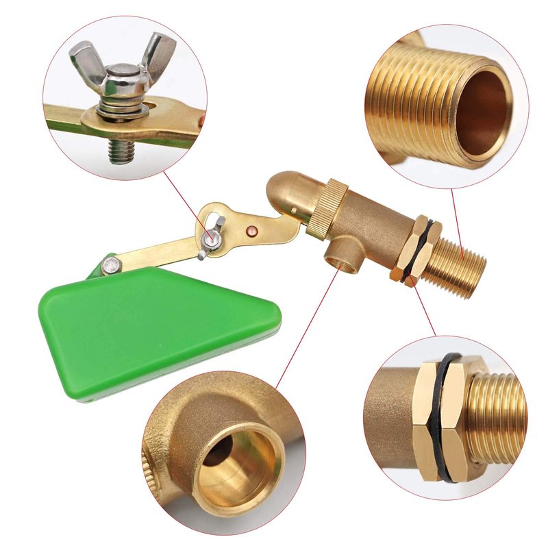 - EASY TO USE: 1/2" thread, very easy to install and adjust water level, you can adjust the water level by rotating the metal wingnut or the green float;