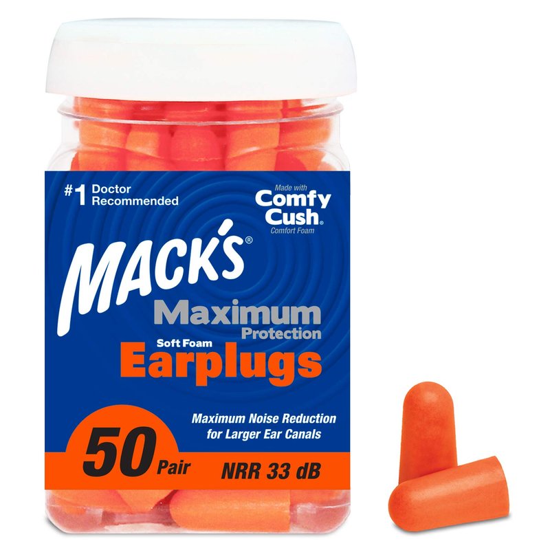 Mack’s Maximum Protection Soft Foam Earplugs – 50 Pair, 33 dB Highest NRR – Comfortable Ear Plugs for Sleeping, Snoring, Loud Concerts, Motorcycles and Power Tools | Made in USA
