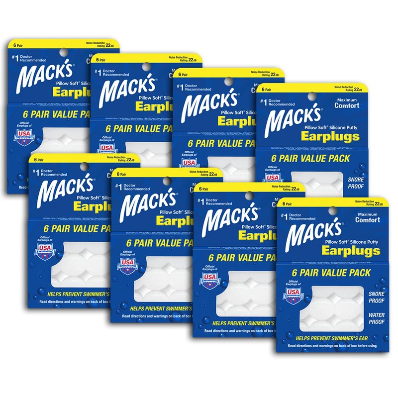 Mack's Pillow Soft Silicone Earplugs - 6 Pair (Pack of 8), Value Pack – The Original Moldable Silicone Putty Ear Plugs for Sleeping, Snoring, Swimming, Travel, Concerts and Studying