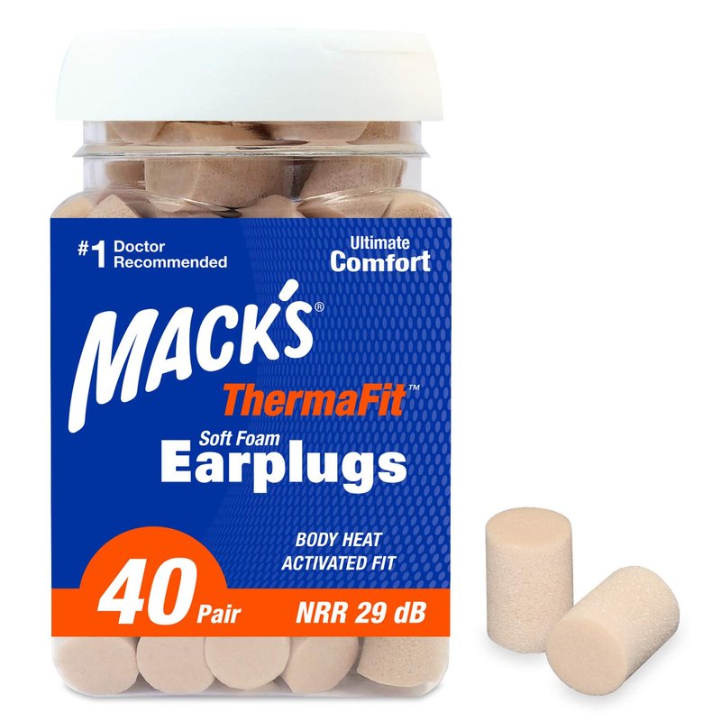 Mack’s ThermaFit Soft Foam Earplugs, 40 Pair - Comfortable Ear Plugs for Sleeping, Snoring, Work, Travel & Loud Events | Made in USA