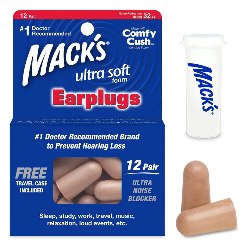 Mack's Ultra Soft Foam Earplugs, 12 Pair - 32dB Highest NRR, Comfortable Ear Plugs for Sleeping, Snoring, Travel, Concerts, Studying, Loud Noise, Work | Made in USA