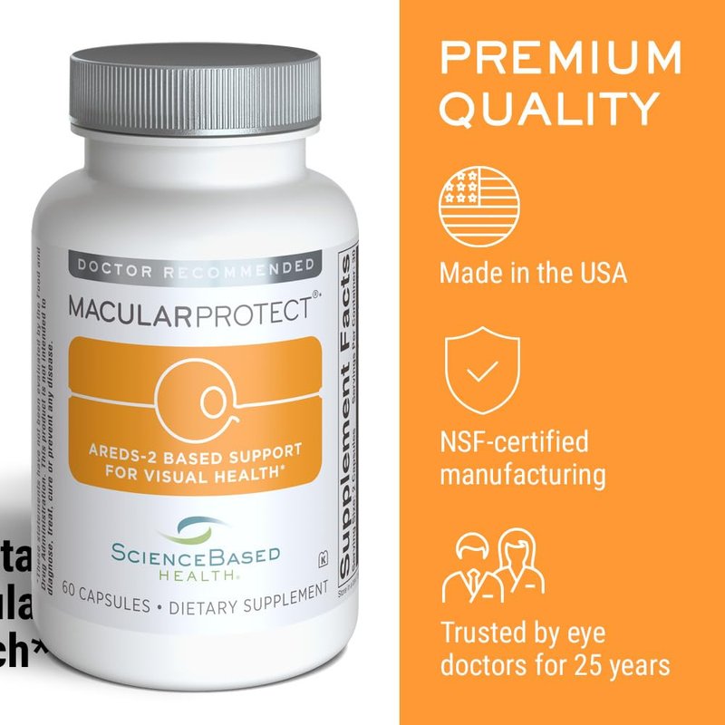 MacularProtect AREDS 2 Formula is a science-based eye health supplement designed to protect your vision and support macular function as you age. Based on the AREDS and AREDS2 clinical studies by the National Eye Institute, it delivers the exact levels of vitamins C, E, zinc, copper, lutein, and zeaxanthin shown to help preserve vision for those at risk. For added macular and circulatory support, MacularProtect includes B6, B12, and folate—a combination of B-vitamins linked to maintaining healthy homocysteine levels, which may help preserve retinal health and long-term visual function. This formula uses FloraGLO lutein, natural vitamin E, and bioavailable B-vitamins to maximize absorption and support antioxidant defense in the eyes. For those concerned about protecting their eyesight, MacularProtect offers clinically proven, comprehensive support. Manufactured in NSF-certified, GMP-compliant U.S. facilities, MacularProtect meets the highest standards for purity, safety, and effectiveness.