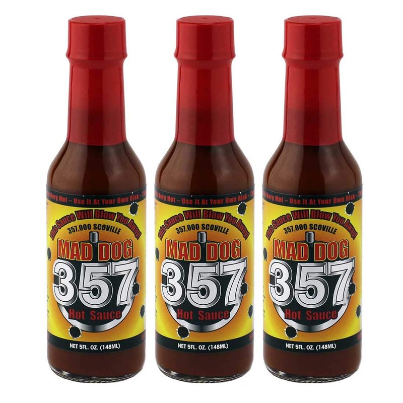 - Our Original Mad Dog 357 is one of the most powerful sauces in the world, and it will take your breath away with its 357,000 Scoville Heat Units.