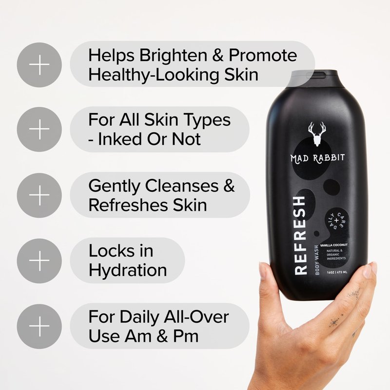 Mad Rabbit Refresh Body Wash - Tattoo Aftercare, Natural Cleansing Ingredients Made For All Skin Types, Gentle, Anti-Aging & Hydrating Formula (16oz)