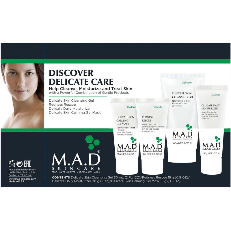 M.A.D Skincare Discover Delicate Care Set – Complete Sensitive Skin Regimen with Gentle Cleansing Gel, Redness Rescue, Daily Moisturizer & Calming Gel Mask – Hydrates & Soothes Irritated Skin