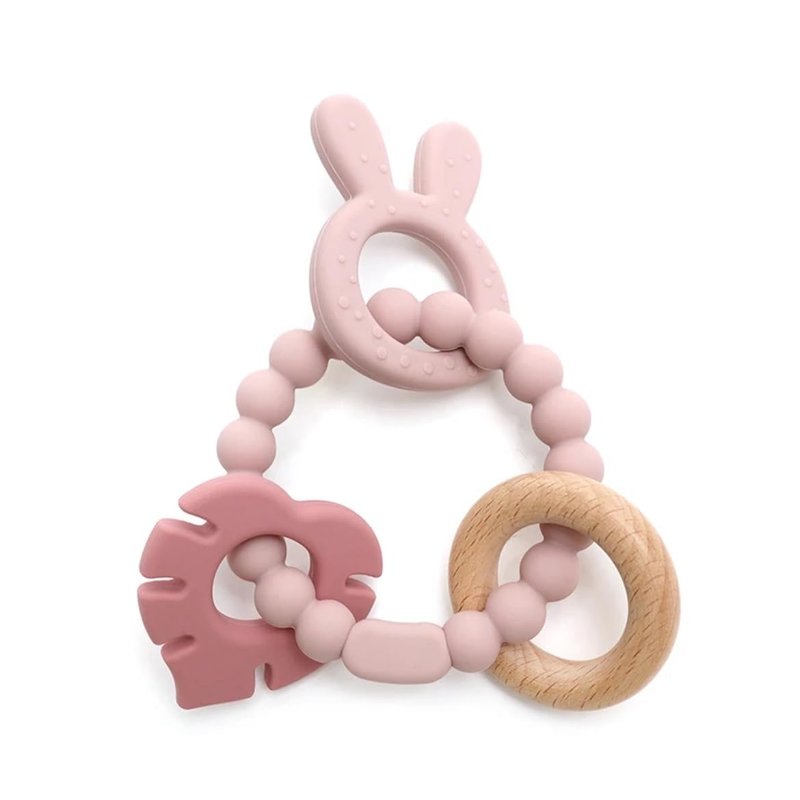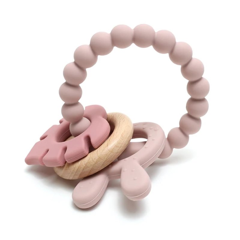 Made by Tushi | Bohemian Teether | Baby Teether | Sensory Exploration and Teething Relief | 100% Food-Grade Silicone Teether Toy | BPA Free | Chewbeads | Silicone with Beechwood Ring | (Pink)