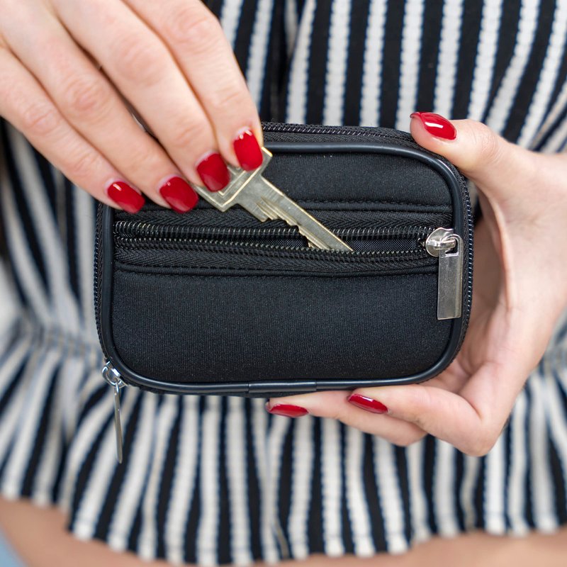 - Front pocket to hold insurance card, receipts, keys, or other small flat items