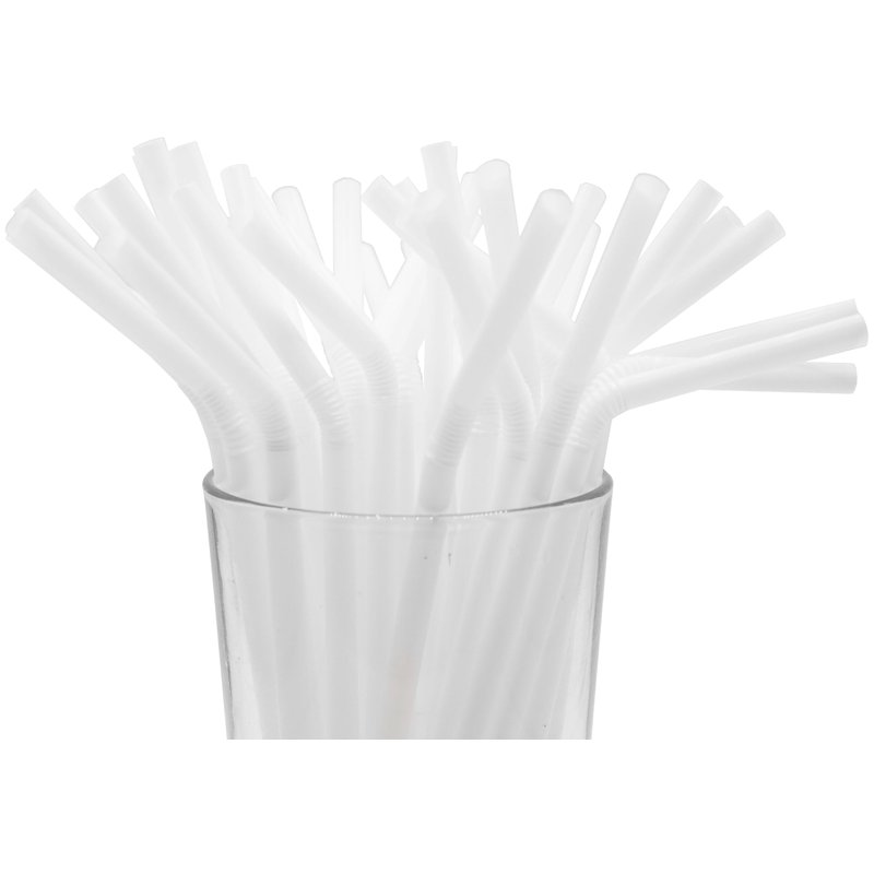- Pack of 250 Flexible Disposable Plastic Straws that are 8.25” long and have a diameter of 0.23” (extends an extra inch when stretched). Each straw has a flexible bend toward the top, allowing you to adjust the angle for comfortable sipping.